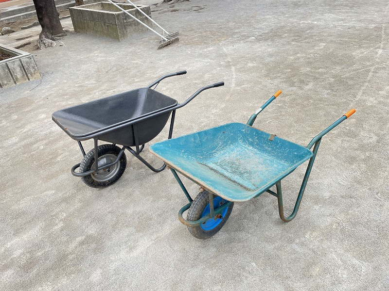 手前の緑の一輪車が使いやすい!